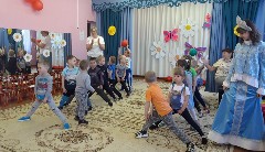 -Благодаря родителям дети старшей группы в новый год побывали в сказке с Хоттабычем, Гномом, Снеговиком, Карабасом Барабасом, Снегурочкой и Дедом Морозом.