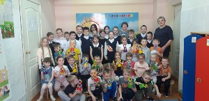 В преддверии весеннего праздника школьники 4 класса с учителем Еленой Фёдоровной пришли в гости в старшую группу. Дети с удовольствием вспомнили, как они ходили в наш садик. Помогли детям сделать сувениры в подарок мамам.